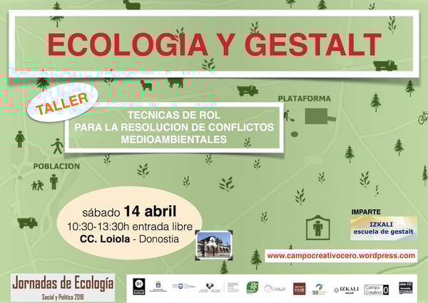 Izkali-Social colabora con la Asociación Campo Creativo Cero en la organización de las Jornadas de Ecología Social y Politica que se realizan en Donosti desde el 2014. Además de asesorar técnicamente las Jornadas, a través de nuestra Escuela de Gestalt colaboramos con la realización de talleres para acercar al publico una dimension experiencial y humanista de la ecología social. En el 2018, el sábado 14 de abril, realizaremos un taller que se basa en una situación comunitaria enfocada...