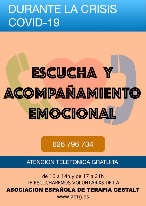 En la Asociacion Española de Terapia Gestalt (AETG) nos hemos sumado a las iniciativas que prestan apoyo a la ciudadaía, de forma solidaria, en torno a la crisis desencadenada por el COVID19. Juanjo Díaz, codirector de Izkali y representante en la AETG de nuestra Escuela de Gestalt, forma parte de la Comisión Social, dedicada principalmente a desarrollar la perspectiva social en el medio gestáltico. A partir del estado de confinamiento decretado para la prevención del contagio, desde la...